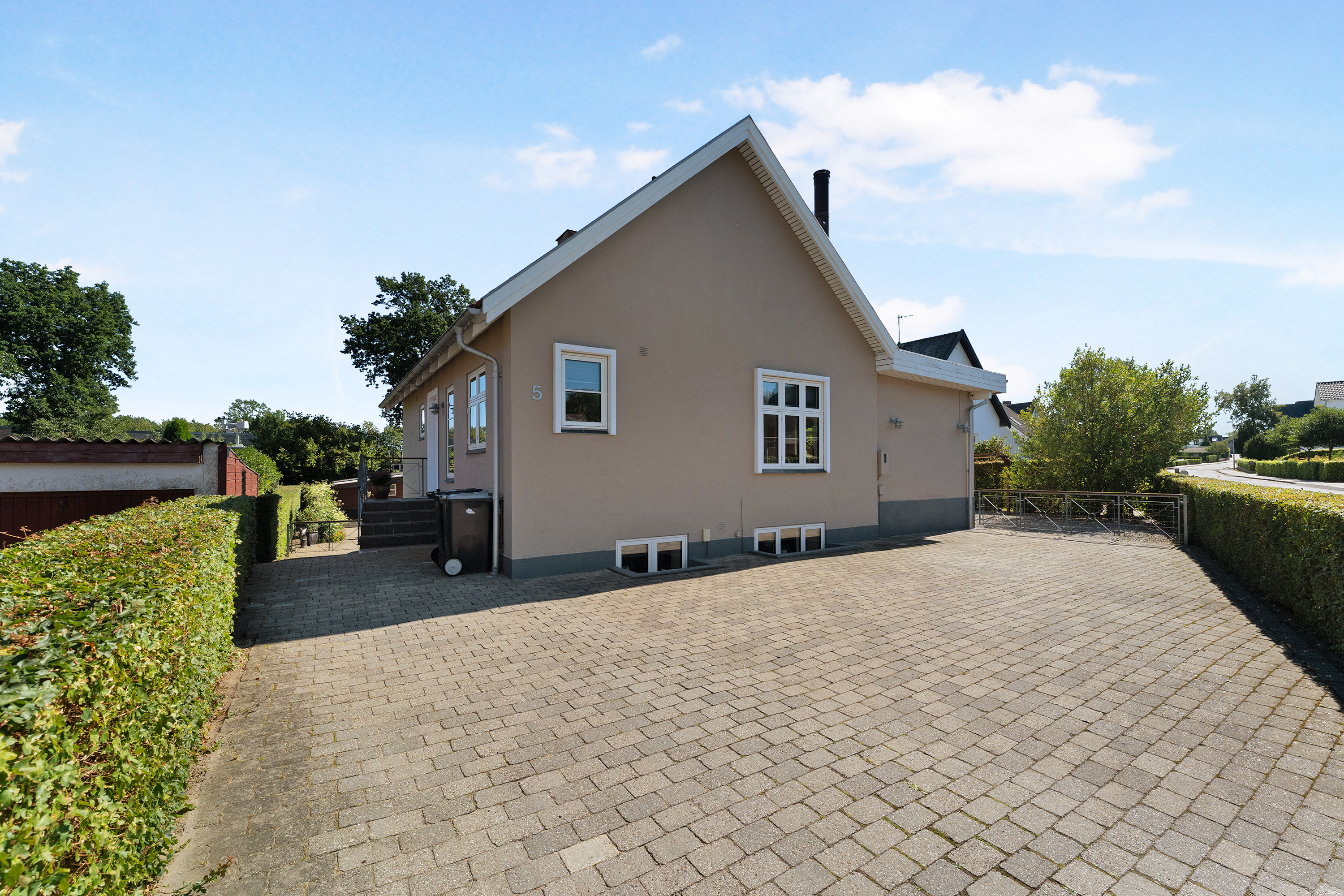 Foruden selve boligen venter der et stort skur samt en lukket og solrig have med flere solrige terrasser samt grøn beplantning, der holder sig fin året rundt.