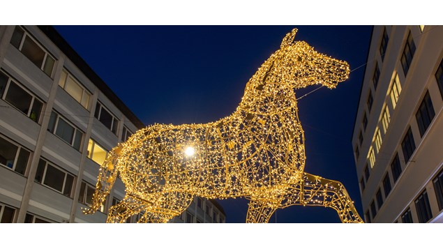 "Jeg glæder mig altid til, at vi kan sætte lyshesten frem og tænde den. Det er en flot lys-dekoration og passer så fint til Randers," siger Jesper Kaas Schmidt, kommunaldirektør i Randers Kommune.