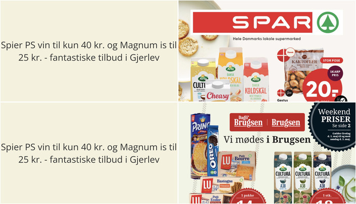 Vi har kigget på denne uges tilbudsaviser for dagligvarebutikker i Gjerlev og fundet nogle supergode tilbud. Her er et udpluk af de bedste tilbud fra DagliBrugsen og Spar.